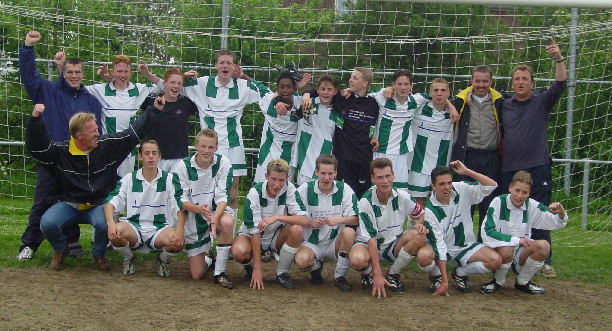 Op onderstaande B1-foto van juni 2002 staat Joris (rechtsboven) samen met zoon Siem (2e rechtsonder) na het bereiken van de halve finale van de KNVB-beker.